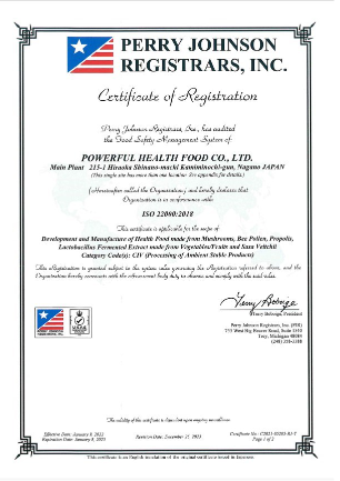 製品は、ISO22000:2018、健康補助食品GMP、清涼飲料水製造許可、菓子製造業製造許可を持つ自社製造工場で製造されています。