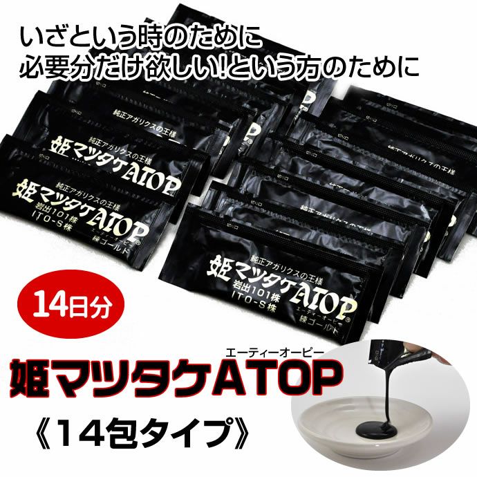 他の画像を見る ハードワーク対応サプリ ハードワークな毎日の為の健康食品<濃さで実感!>姫マツタケATOP練りペースト 14包 1回のみ・定期 定価 ¥ 13,208 税込 ヒメマツタケを特許取得済みの製造方法で、より飲みやすく仕上げたのが『姫マツタケATOP(エーティーオーピー)』 日本で菌株を管理し、一番アガリクスの栽培気候に適している原産国パラグアイで育ち、信州信濃の広大な自然と澄んだ空気の中で作っている健康食品です。 詳細を見る お気に入りに登録する
