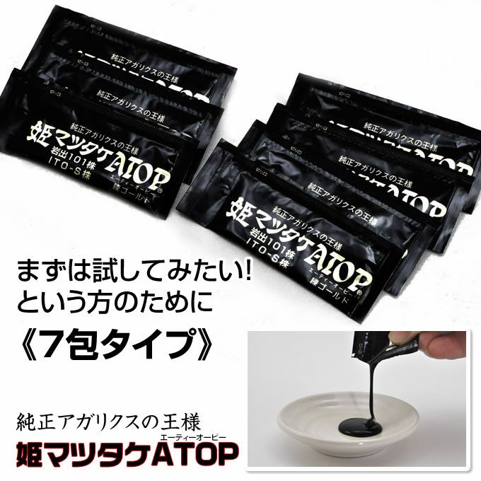 他の画像を見る 《純正アガリクスの王様》姫マツタケATOP練りペースト7日分 1回のみ・定期 定価 ¥ 6,912 税込 ヒメマツタケを特許取得済みの製造方法で、より飲みやすく仕上げたのが『姫マツタケATOP(エーティーオーピー)』 日本で菌株を管理し、一番アガリクスの栽培気候に適している原産国パラグアイで育ち、信州信濃の広大な自然と澄んだ空気の中で作っている健康食品です。 詳細を見る お気に入りに登録する